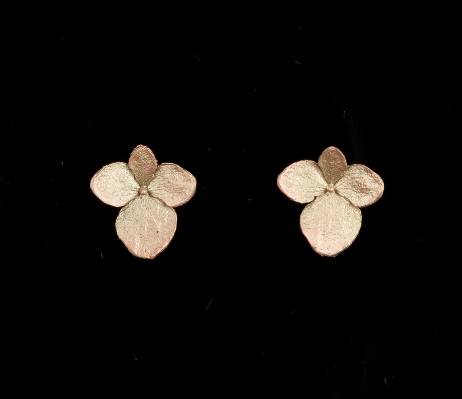 Materials: The Hydrangea flowers are cast in bronze with an antique bronze over copper finish. The posts are 925 silver.