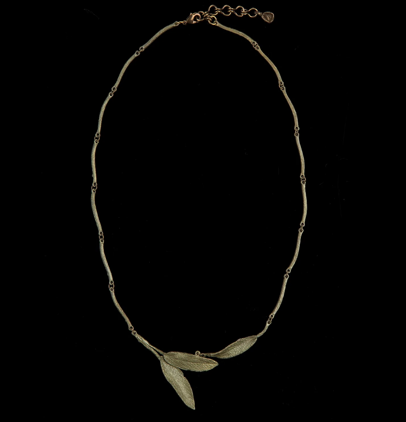 Measures: Chain: 18" L (adjustable); Drop: 1.75" LMaterials: The Sage leaves and twigs are cast in bronze.