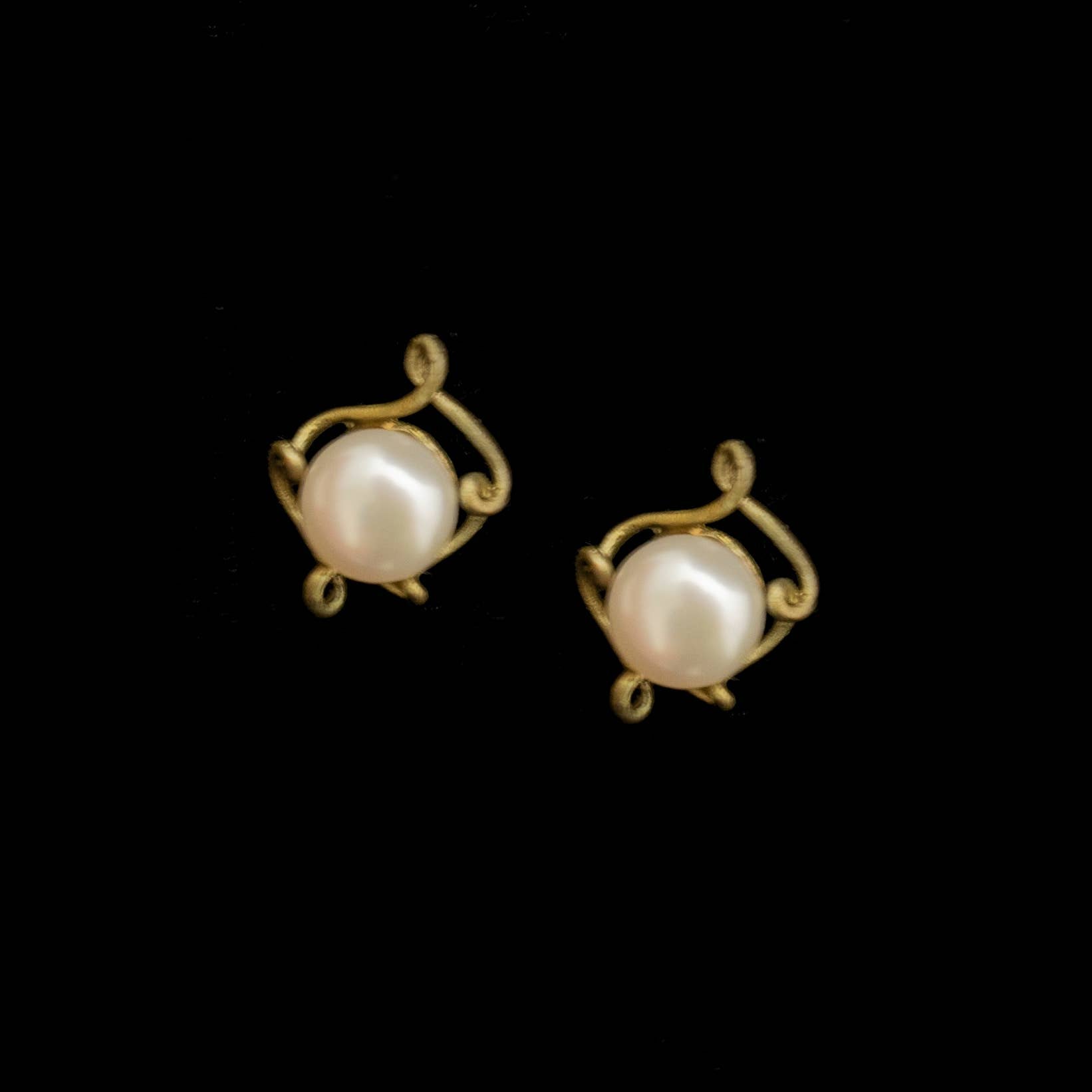 Cast bronze with a hand patina finish. Accented in freshwater pearls.