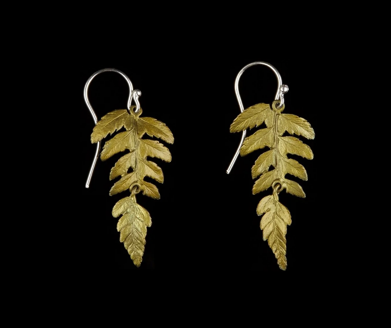 Materials: The Fern earrings are cast in bronze with green patinated leaves.