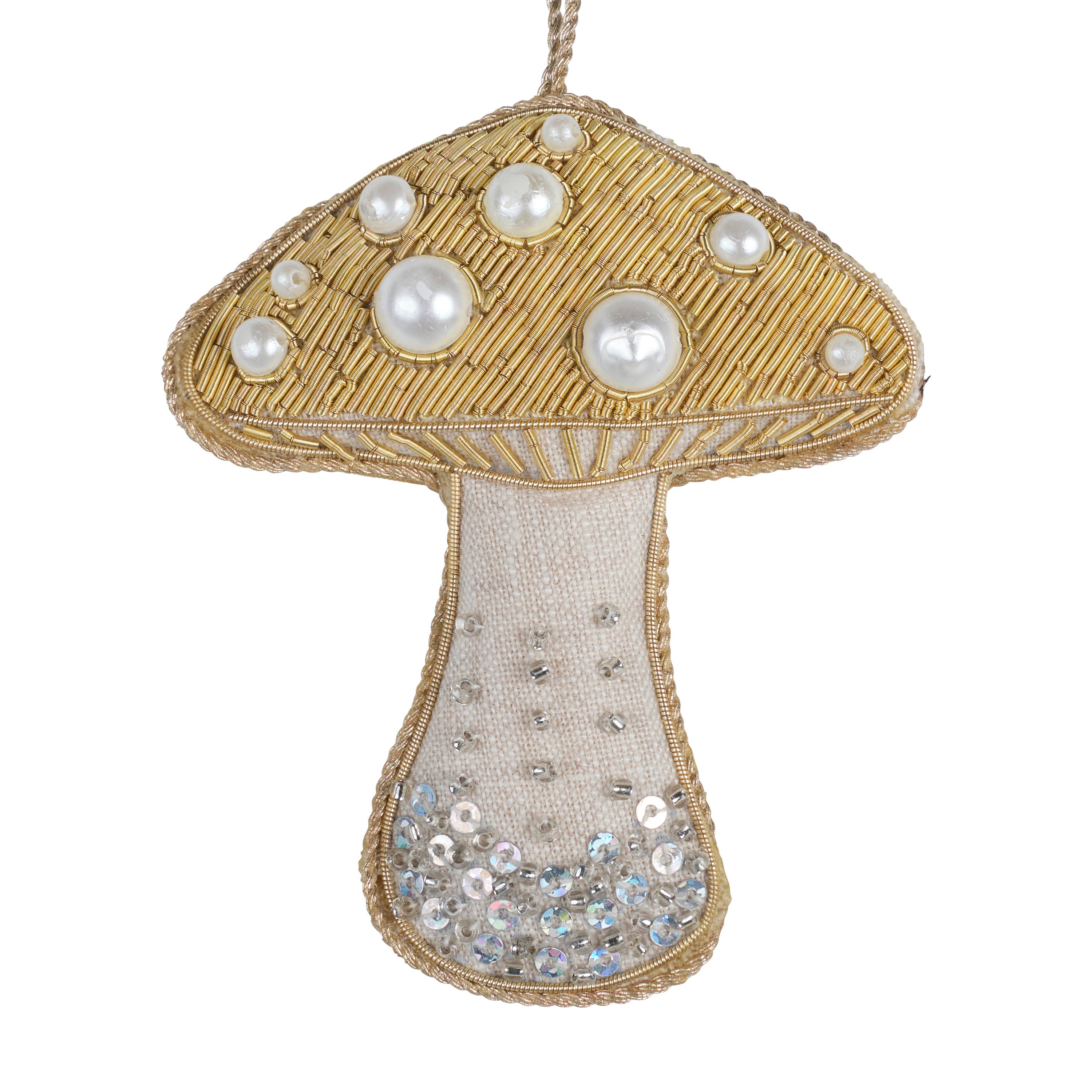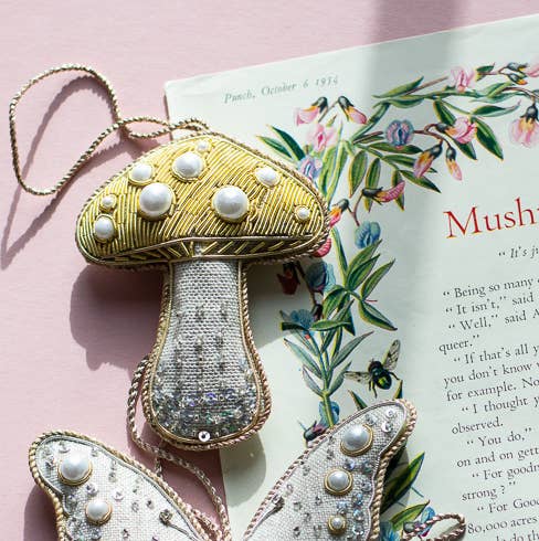 Handmade Toadstool Mushroom Christmas Holiday Decoration in Irish Linen Tree Ornament