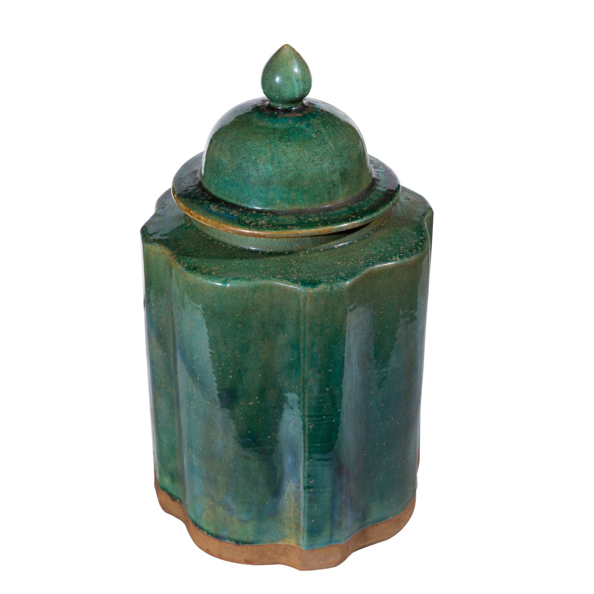 The Speckled Green Ribbed Tea Jar is a unique and beautiful piece for your home. Made from high-quality porcelain, each jar is handcrafted and hand-painted, ensuring no two are exactly alike. This tea jar is an antique reproduction, perfect for adding a touch of elegance to your decor. Use it for storing tea or simply as a decorative item. Its speckled green finish and ribbed design make it a standout piece.