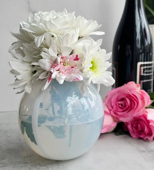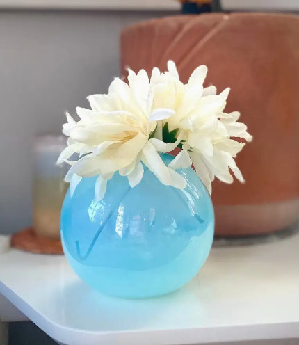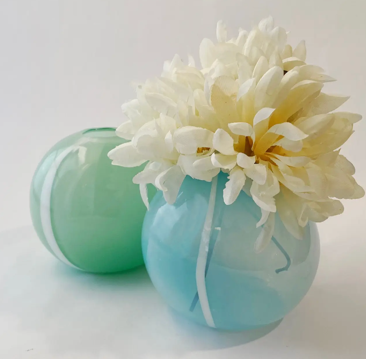 This almost glowing bud vase is a great pop of modern color to any home. This is one of my absolute favorite color combinations and I will soon be rolling the rest of my "Breathe" line. All of the "Breathe" pieces are designed to inspire tranquility and calm into a space. This bud vase that sits just about 4.25" tall is aimed to do that as well. Like all of my pieces, other colors can be made upon request.