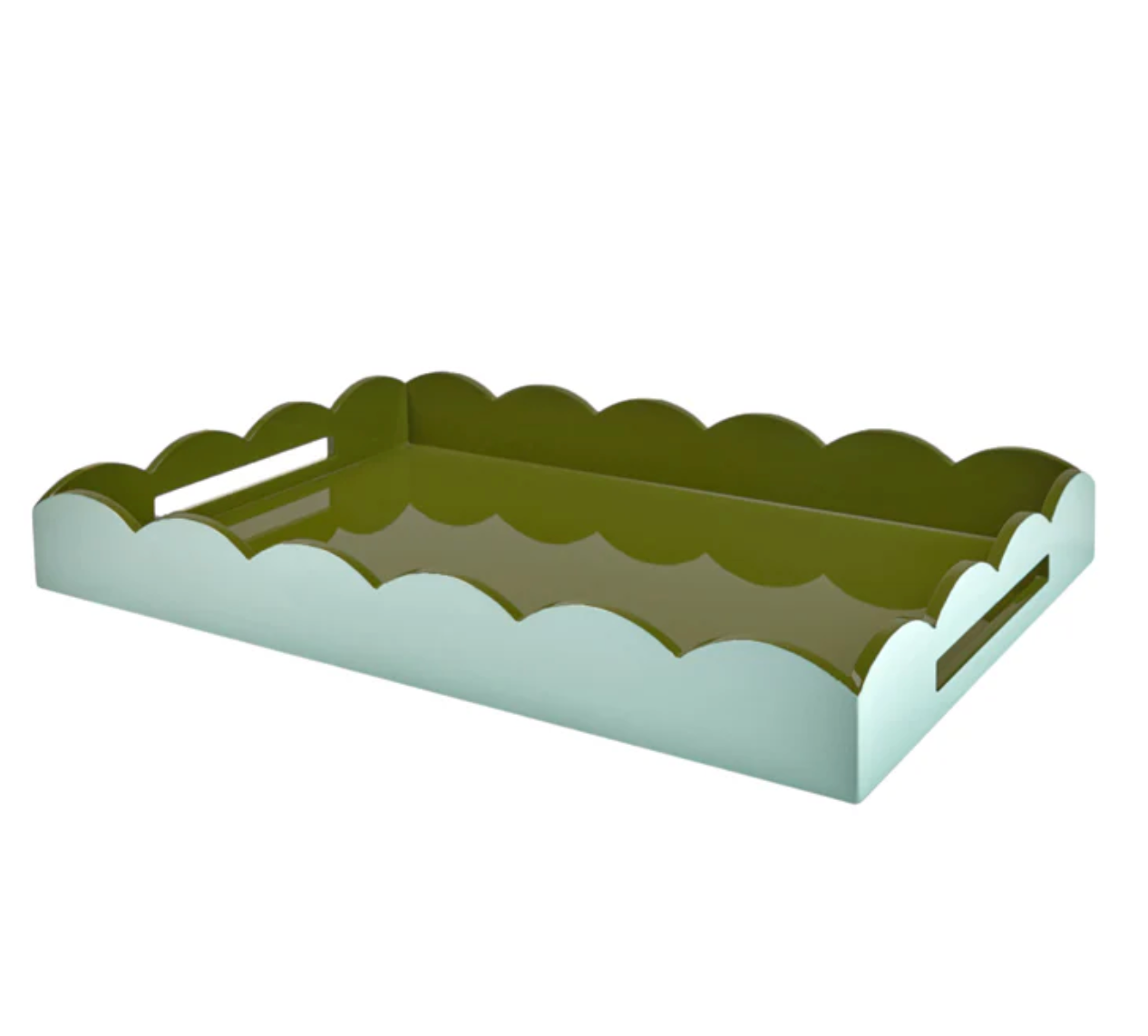Eau De Nil & Khaki Large Lacquered Scallop Ottoman Two-Tone Tray