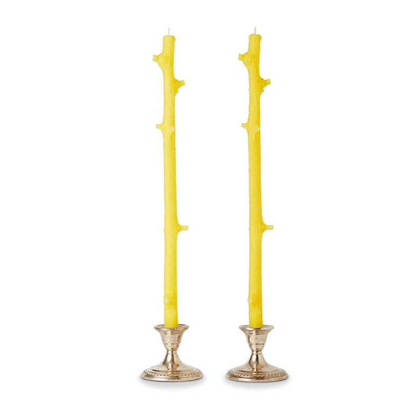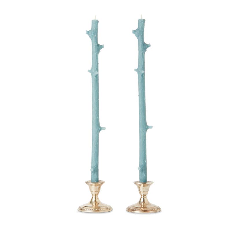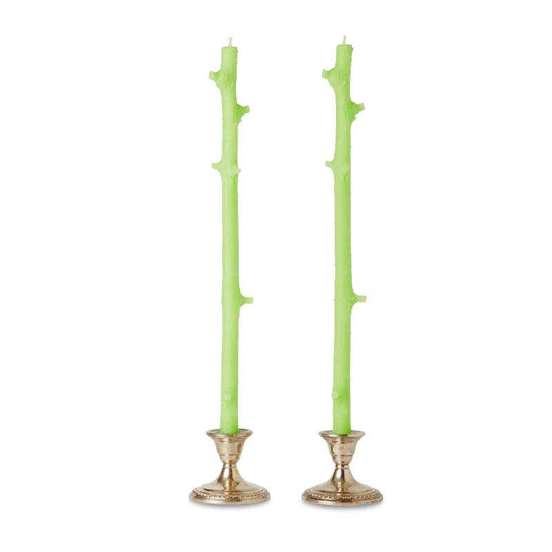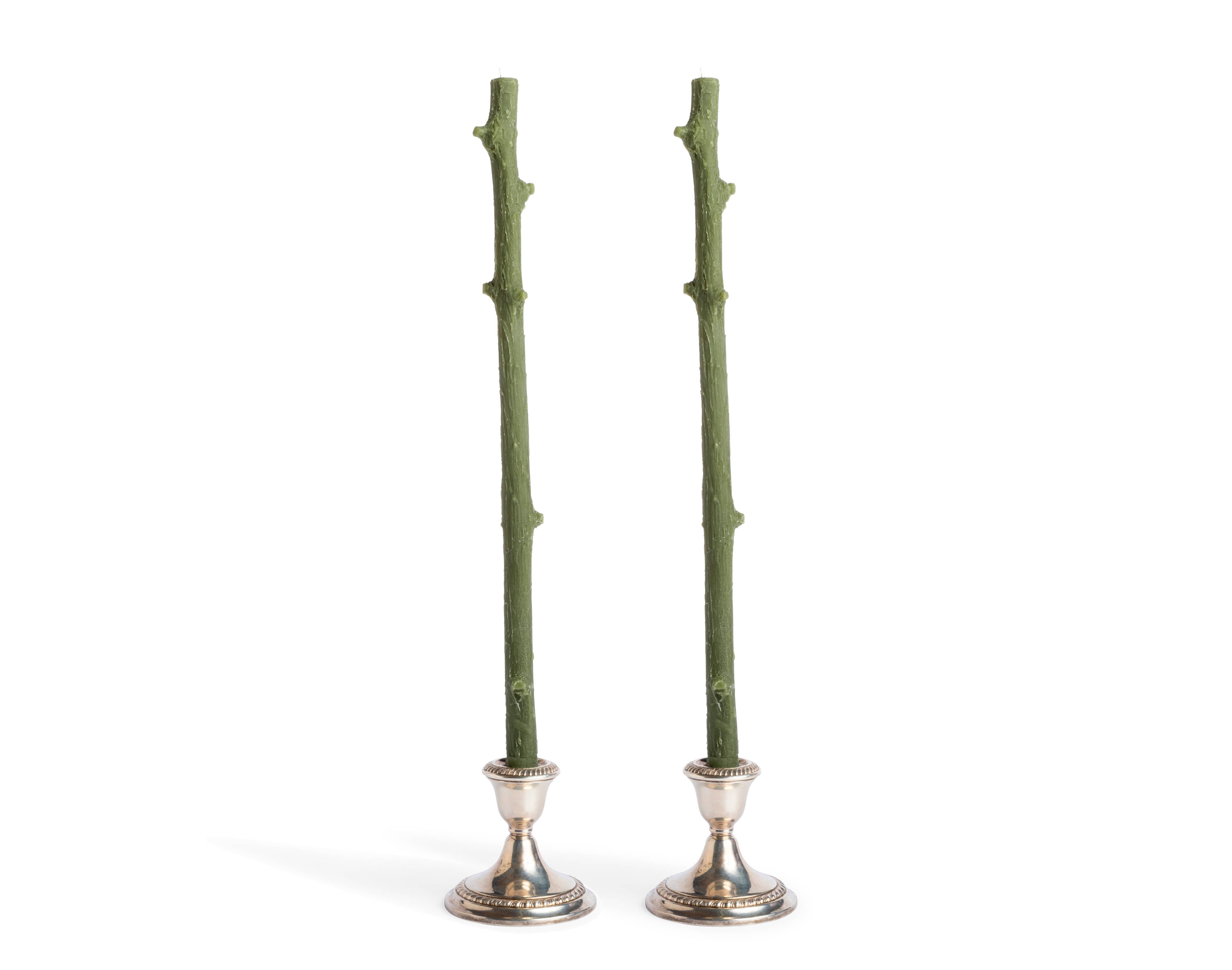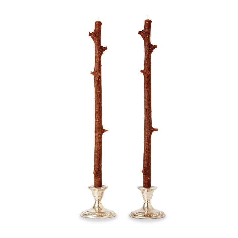Our Hemlock Candle is cast from a mature branch covered in rough bark. The texture of this stick shows off in any color.