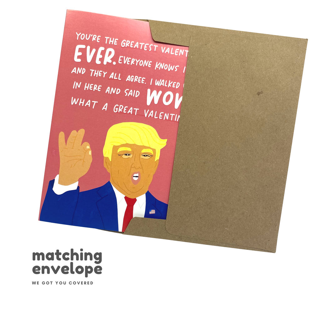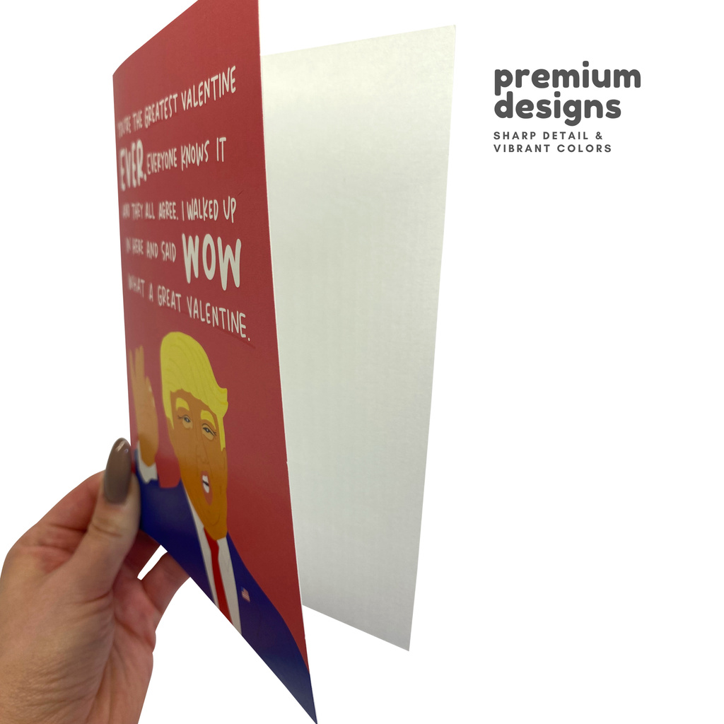 Give your significant other a laugh this Valentine's Day with this funny Donald Trump card. Made from sturdy card stock and coated with a matte finish, this card offers a beautiful texture and high-quality feel.