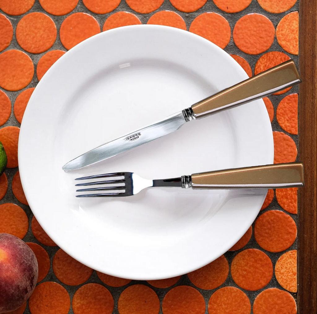 For cutlery with light-coloured handles, avoid prolonged contact with foods that stain (coffee, tea, tomato sauce, etc.).
