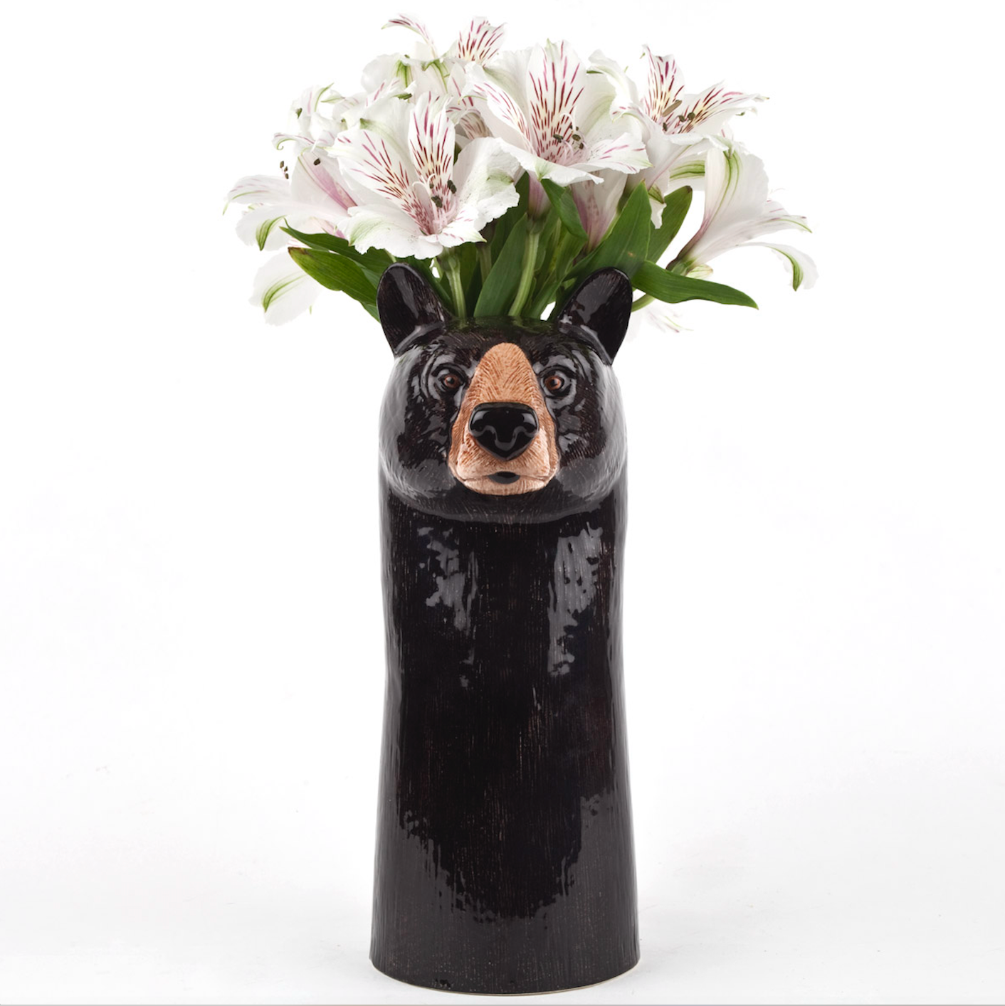Large hand painted black bear vase from the United Kingdom. Dishwasher safe.