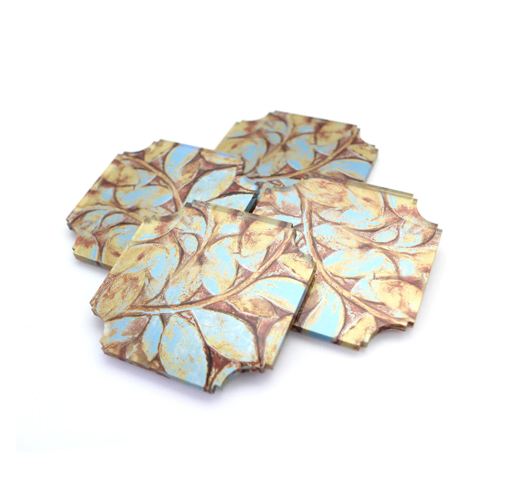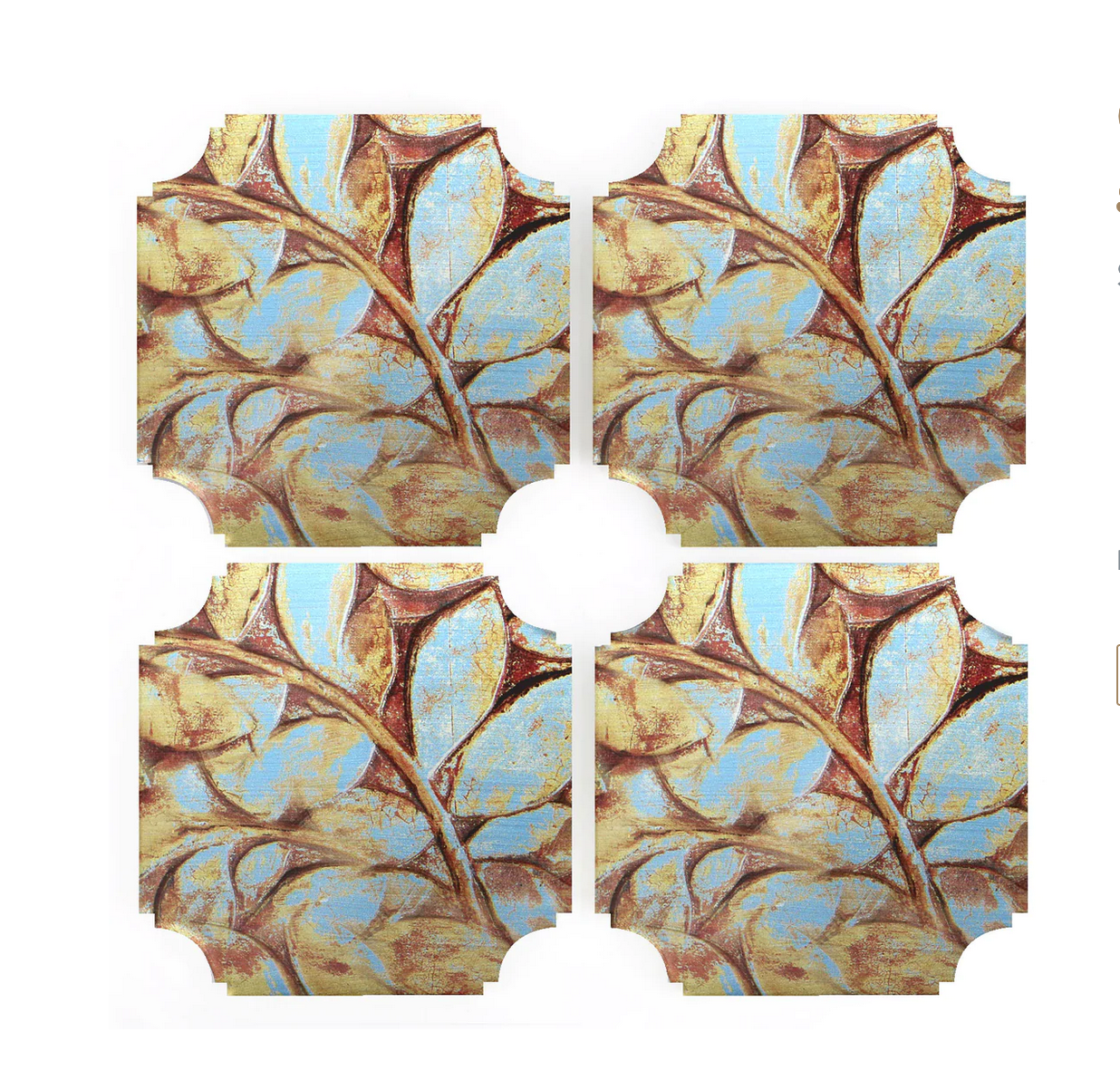 Blue and Gold acrylic coaster set. Includes 4 unique coasters.