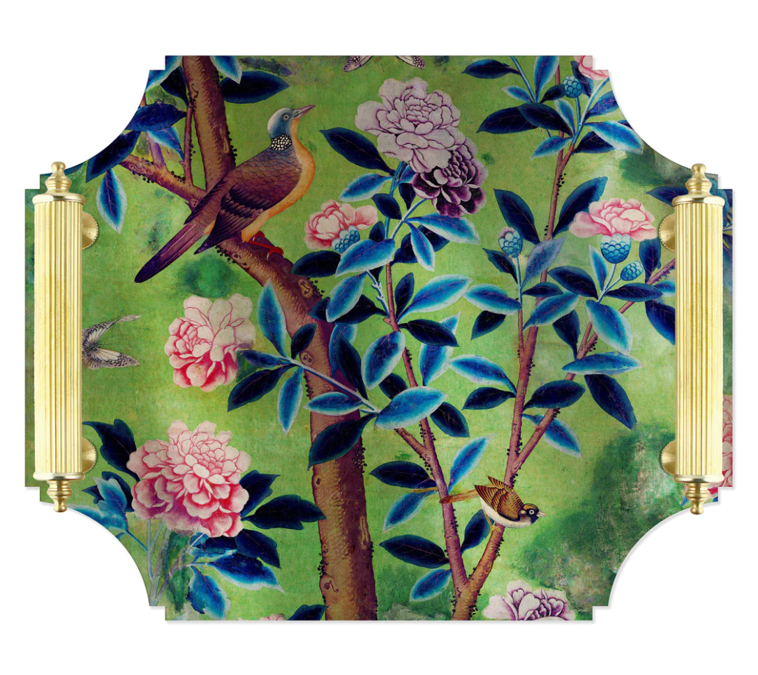 Acrylic Tray - Green Chinioserie with Brass Handles
