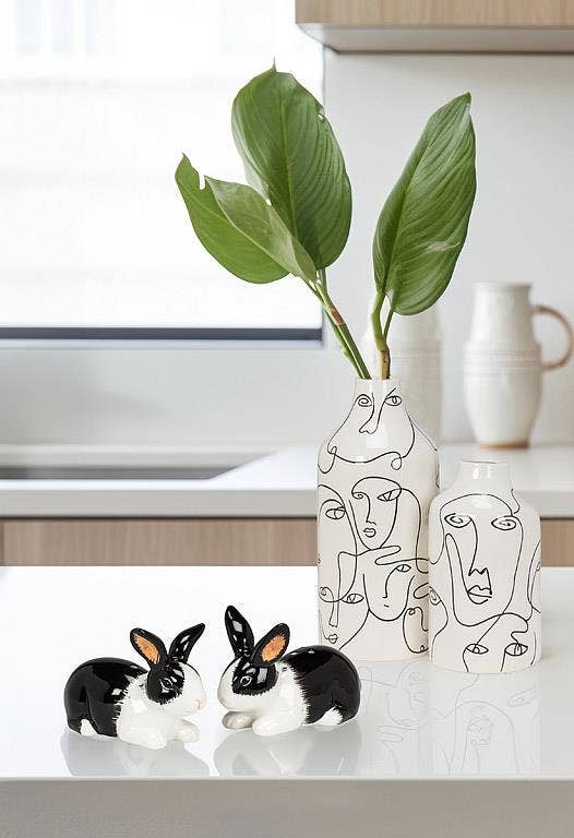 Bring some adorable bunnies to your breakfast table with this Dutch Rabbits Salt & Pepper. Crafted from ceramic with smooth, pleasing lines accented with subtle details, this adorable pair comes in black and white to help spice up your meals and your decor.