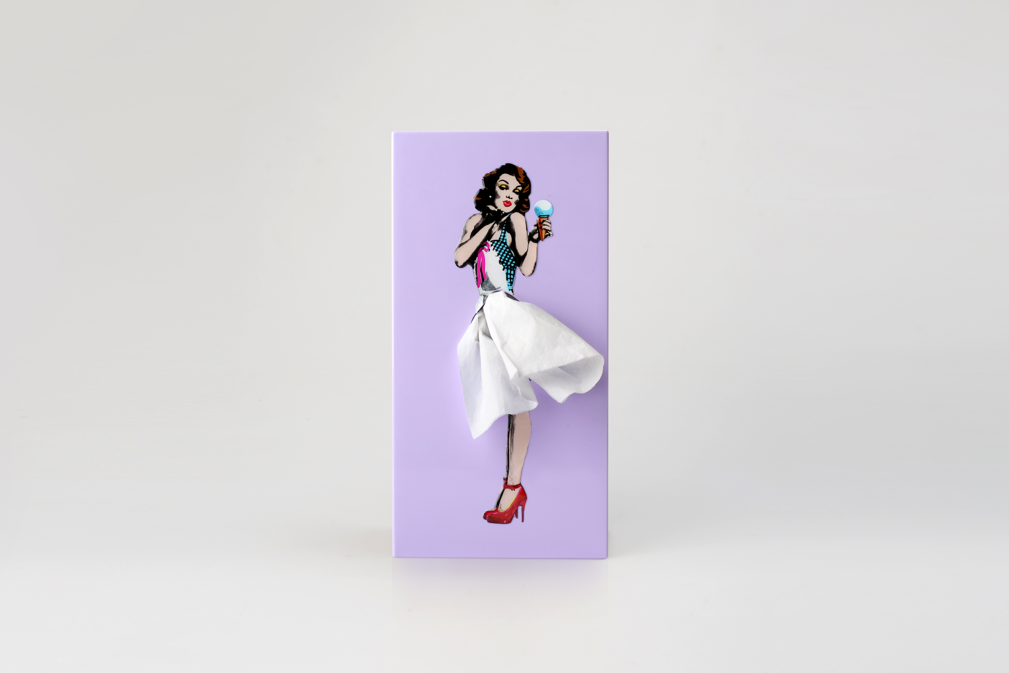 Every time you pull a tissue, the lady's skirt restyles itself like catching a gentle breeze.