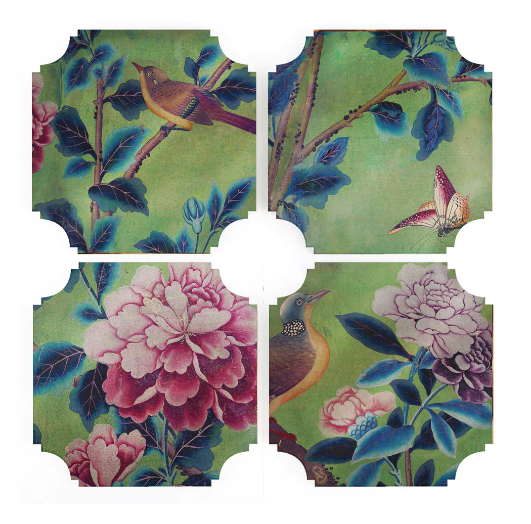 Colorful Green Chinoiserie Coaster Set of four Unique Coasters.