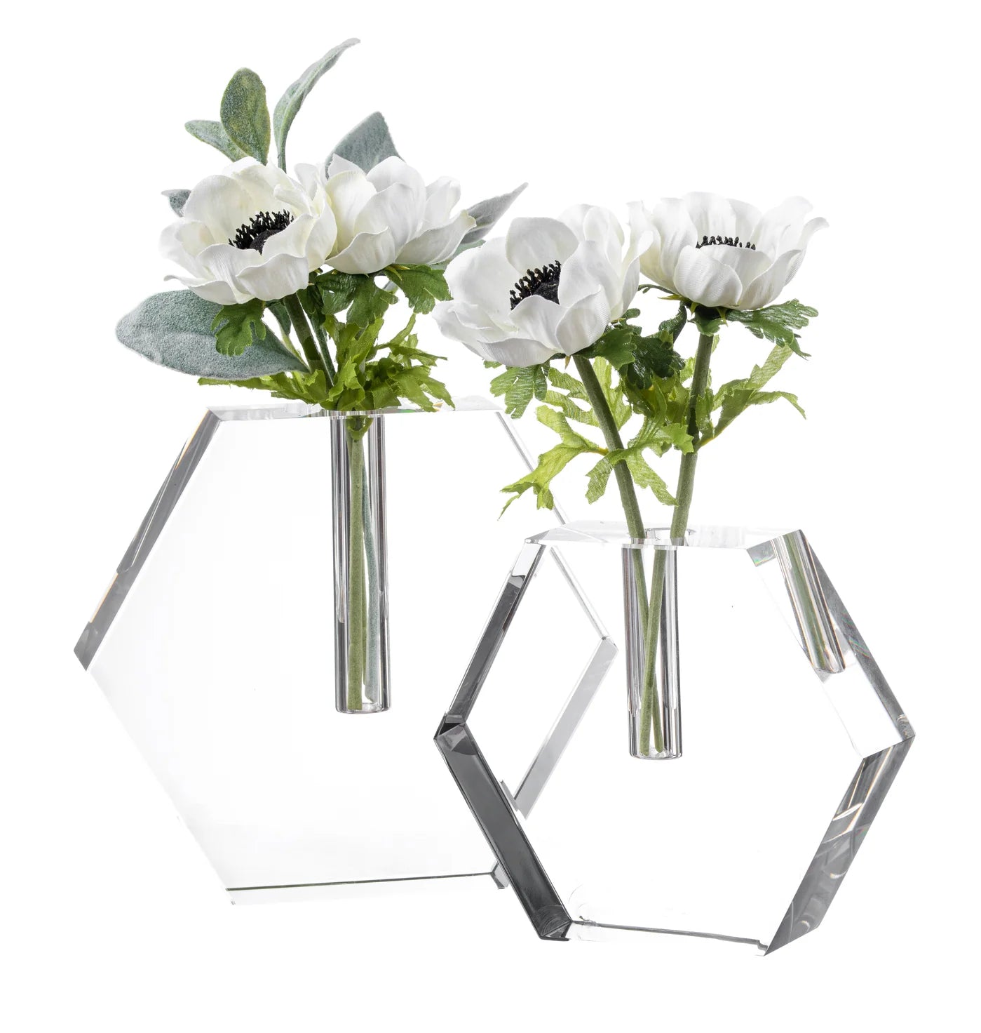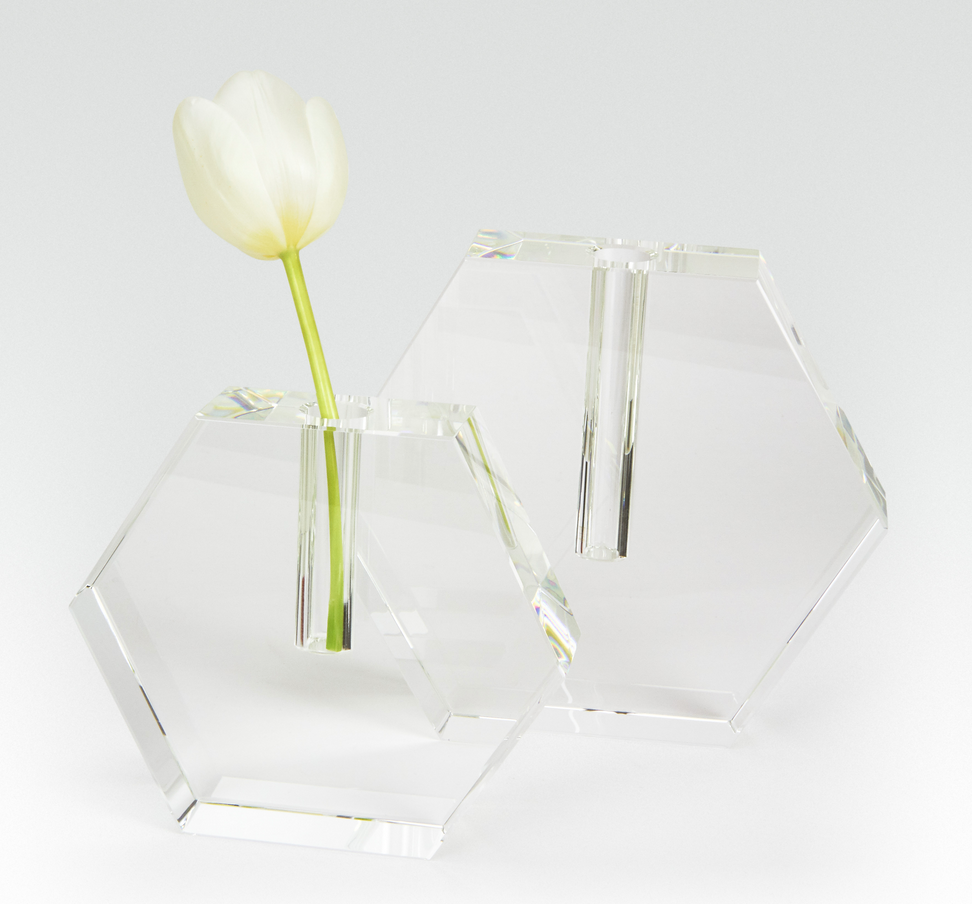 Hexagon Shape Flat Crystal Bud Vase in Small and Large